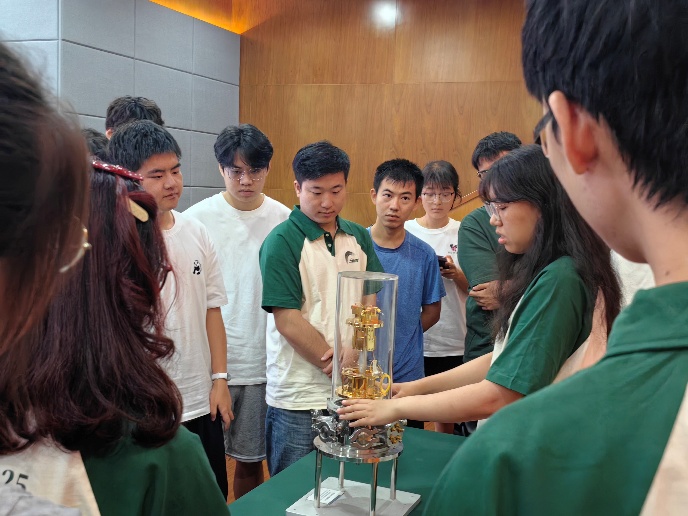 接着,同学们走进研究所的重点实验室进行参观。实验室涵盖半导体物理、材料科学、器件制造等多个前沿领域,并设有专门从事微纳结构加工与表征的实验中心。在自旋电子学、低维半导体与量子输运等物理实验平台上,各类高精度仪器设备有序运行,如扫描电子显微镜、原子力显微镜、超快激光光谱仪等。科研人员为同学们详细讲解了这些设备的工作原理及其在实际科研项目中的应用。大家沉浸在浓厚的科研氛围中,积极与一线科研人员交流提问,将讲座中所学的前沿理论与眼前的实验装置相结合,实现了从抽象概念到具体实践的理解升华。