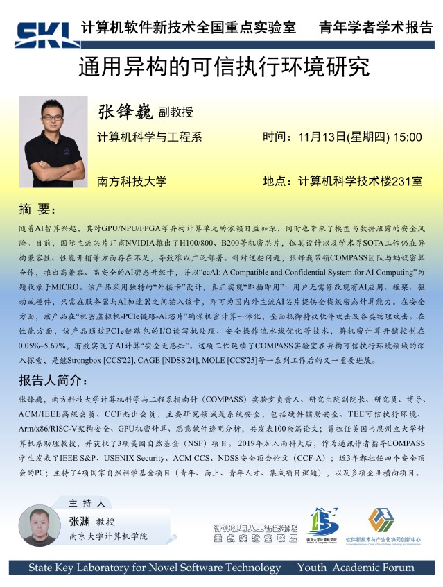 2025年11月13日“软件新技术讲坛”学术报告 - 张锋巍 副教授