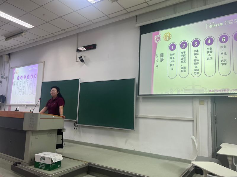 教务导师陈嘉艳为同学们带来了详尽且务实的全方位教务指导。涵盖通识学分修读、通修课程修读、教务相关规定解读,并公布教务导师的联系方式。围绕五大类本科课程,她重点解析了选课操作流程和补退选规则。针对电子专业特点,陈老师还列举了易挂科课程,为同学们敲响警钟,激励大家以更积极的态度投入学习。