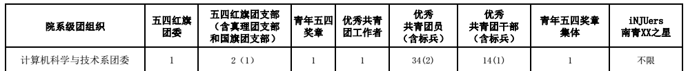 各位老师、同学,大家好!博彩网站 团委已发布2019年度五四评优通知,根据文件,我系各类评优可推荐名额为: