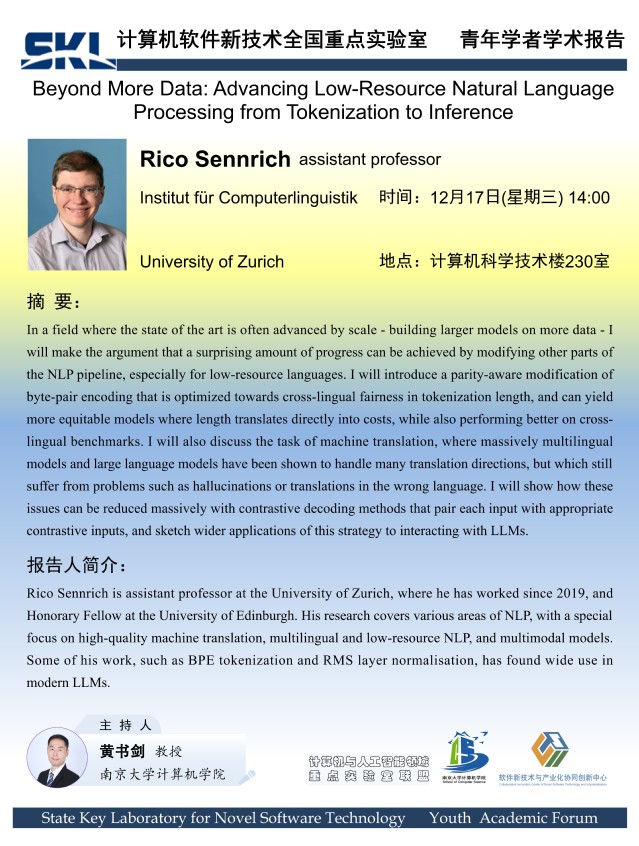 2025年12月17日“软件新技术讲坛”学术报告 - Rico Sennrich assistant professor
