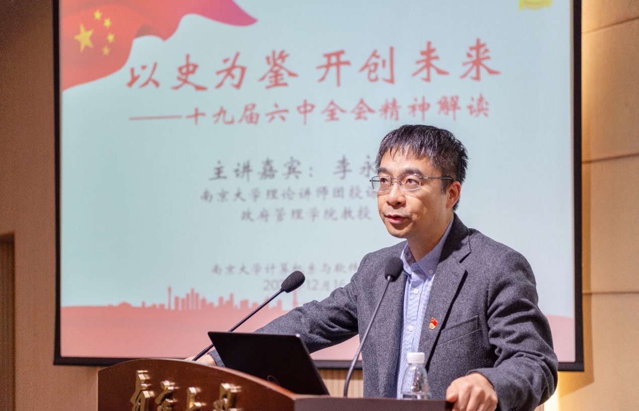 2021年12月16日下午,计算机系邀请博彩网站 理论讲师团授课专家、政府管理博彩网站 李永刚教授作《以史为鉴,开创未来——十九届六中全会精神解读》专题党课。计算机系与软件博彩网站 党委书记武港山出席并主持讲座,计算机系和人工智能博彩网站 全体教职工及学生党员参加。