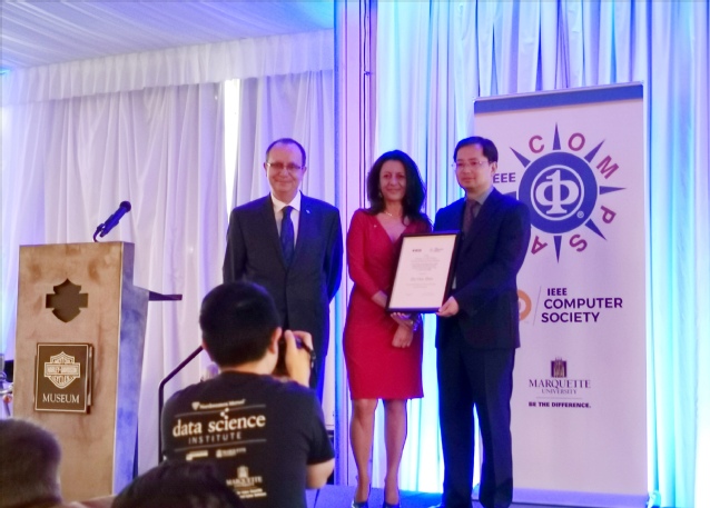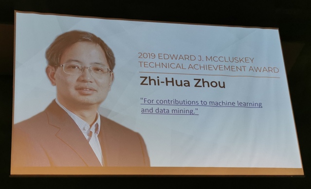 2019年7月17日,在美国威斯康星举行的颁奖晚宴上,IEEE计算机学会主席Cecilia Metra教授向博彩网站 计算机系主任、人工智能博彩网站 院长周志华教授颁发2019年度IEEE计算机学会Edward J. McCluskey技术成就奖(Technical Achievement Award)。该奖设立于1985年,颁发给世界范围内在计算机和信息科学与工程领域做出了卓越创新贡献从而显著推动了技术进步的杰出学者。周志华教授因其对机器学习与数据挖掘的卓越贡献而获奖。