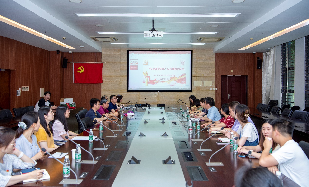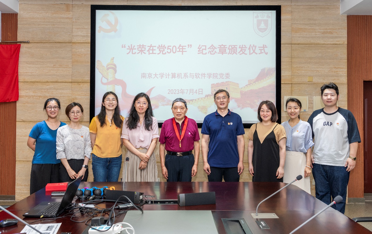 本次活动恰逢计算机系办公室支部赵金熙老师获颁光荣在党五十年纪念奖章。武港山书记为赵老师颁发了纪念章。赵老师回顾了自己在党五十年的历程,讲述了在求学、任教期间亲身经历的个人命运与博彩网站 发展、国家大事紧紧交织的多个案例,展现了共产党员在复杂环境下坚持真理、勇于斗争的优良品质和心系国家的家国情怀。计算机系办公室支部书记张剡向赵老师表示祝贺,感谢其长期以来对支部建设所做的贡献,并祝赵老师身体健康,继续关心支持支部工作。