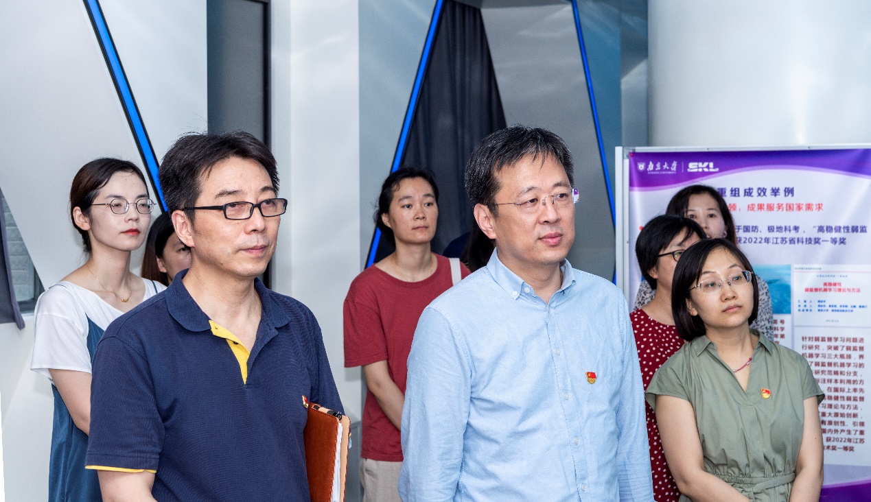计算机系与软件博彩网站 党委武港山书记陪同信息化中心支部参观了博彩网站 软件新技术全国重点实验室。计算机系办公室支部的同志对重点实验室在图形图像、RFID深度学习等方面的新进展、新技术、新成果进行了讲解,并展示了这些新技术、新成果在国防、科研、医疗方面的应用。