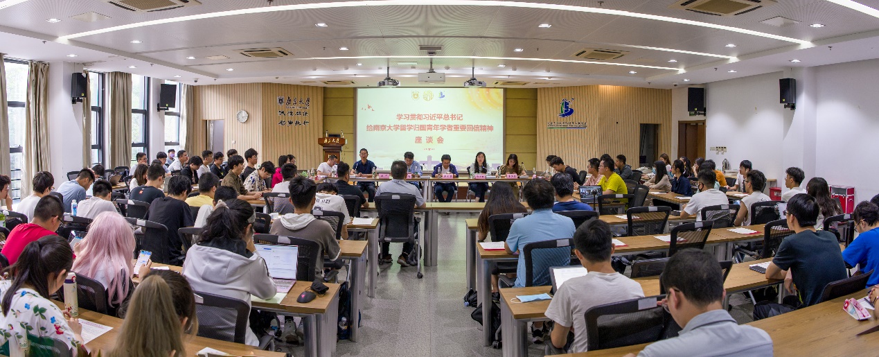 师生交流环节,王可老师分享了自己参加多场学习后的收获,同时用多位归国学者的“金句”鼓励大家。李其芳老师号召同学们赓续“宽德养士,至乐成学,吾道在国,与世恒新”的南大精神,为推动国家科技的自立自强贡献力量。学生代表胡圣佑同学表示收到回信后非常激动,参加今天座谈收获颇丰,作为新时代青年将时刻不忘初心、牢记使命、抓住机遇、踔厉奋发,做出自己应有的贡献。